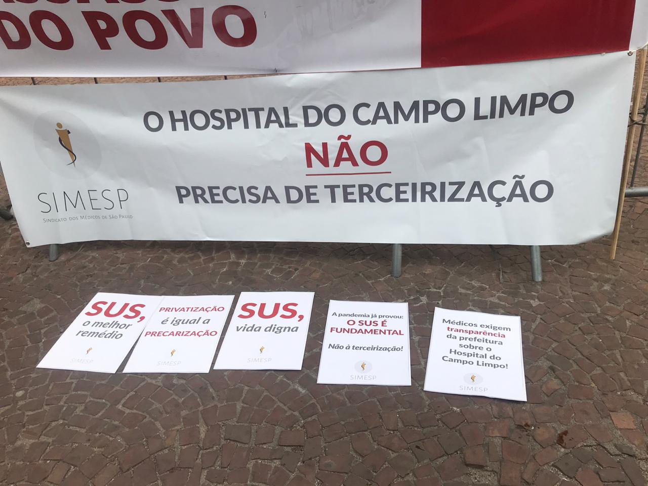 De acordo com Juliana Salles, diretora do Sindicato dos Médicos de São Paulo (Simesp), presente no ato, além de o Hospital do Campo Limpo está passando para a gestão da organização social (OS) Hospital Israelita Albert Einstein, diversos setores do Hospital do servidor Público Municipal (HSPM) e do Hospital do Tatuapé foram totalmente privatizados. “Nós não aceitamos as terceirizações da saúde. Terceirizar é precarizar… Esses funcionários entram em um esquema de quarteirização e pejotização sem direitos trabalhistas. Nós não aceitaremos isso. Os médicos e médicas não aceitam o sistema de trabalho precário e colocar todos nós em risco”, disse Juliana na manifestação.