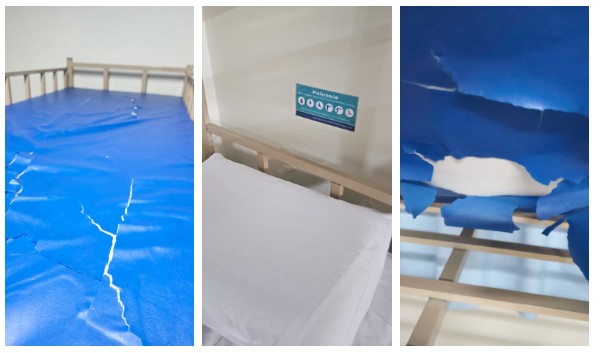 Ambientes de descanso sujos, com colchõe danificados e sinalização etarista