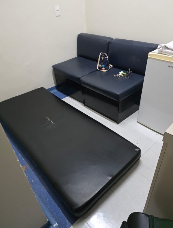 Espaço muito pequeno destinado a residentes e médicos descansarem