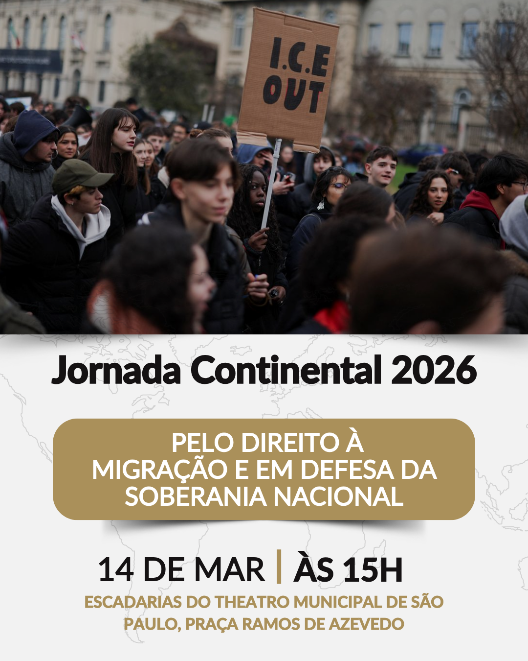 No próximo sábado, 14 de março de 2026, às 15h, será realizada em São Paulo uma manifestação convocada pela Jornada Continental pelo Direito de Migrar, pelos Direitos dos Migrantes e pela Soberania. O ato acontecerá nas escadarias do Theatro Municipal de São Paulo, na Praça Ramos de Azevedo.