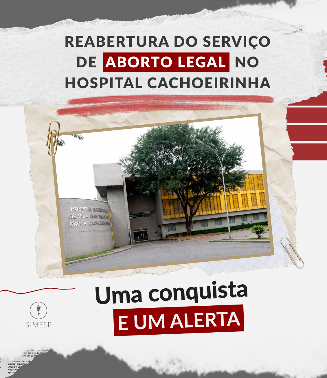A reabertura do serviço de aborto legal no Hospital Municipal Vila Nova Cachoeirinha, em março deste ano, representa uma conquista importante. Ao mesmo tempo, o episódio expõe um cenário mais amplo e persistente no Brasil, de dificuldade de acesso a um direito já garantido em lei e a crescente pressão institucional sobre profissionais que atuam nesse tipo de atendimento. A conquista foi resultado de uma articulação ampla, que reuniu diversos atores, incluindo o Simesp e demais sindicatos da saúde. A mobilização pressionou o poder público e garantiu a retomada formal do atendimento, demonstrando a importância da atuação coletiva na defesa de direitos.
